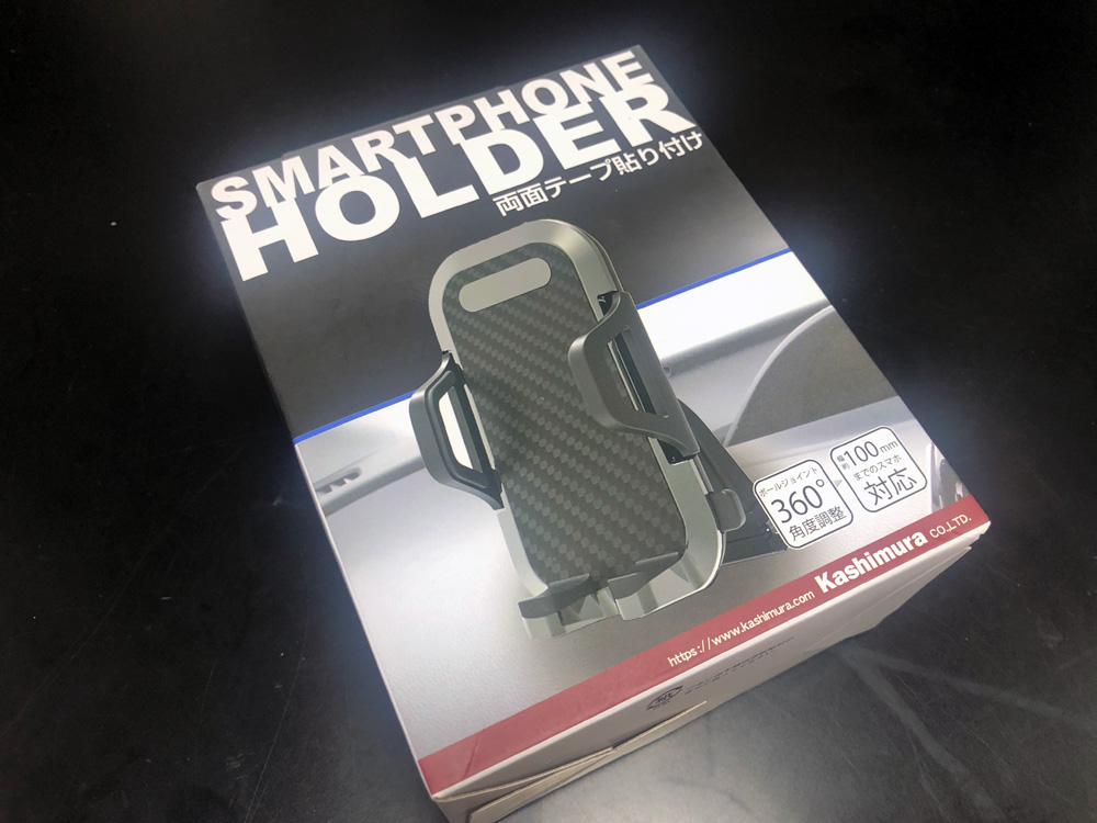 しっかりとシリコンオフで脱脂してカシムラ製のスマホホルダーの両面テープをしっかりと固定しました。