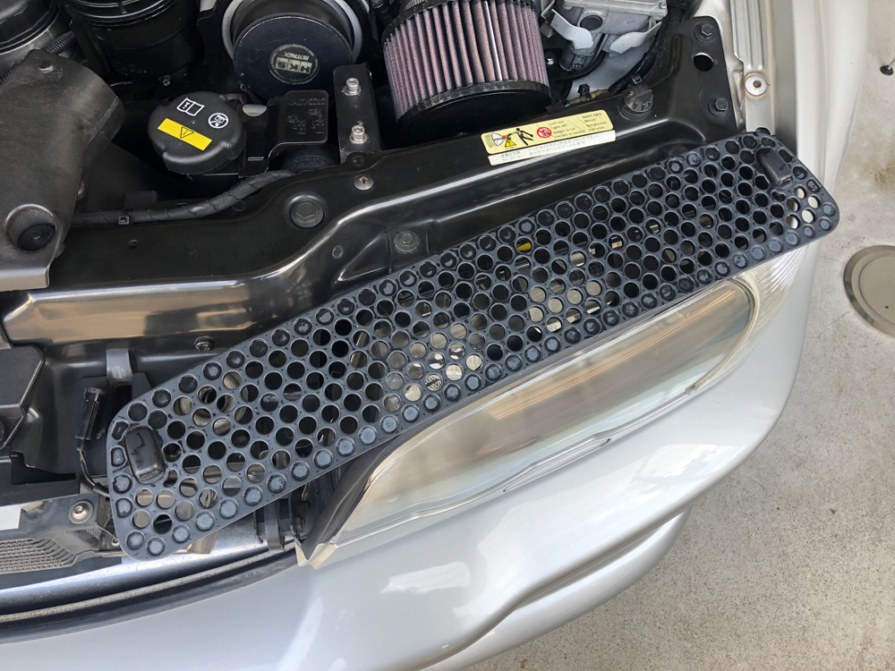 私の車はE46 328ciはボディはE46 M3になっています。ボンネット(エンジンフード)のウィンドウオッシャーの噴射部分のグリルの部分が数年前から白化してきており「そのうち何とかしよう」と思いつつ長年放置してきましたが、今回ボンネットグリルを取り外して白化対策、および破損部分の修理を行いました。