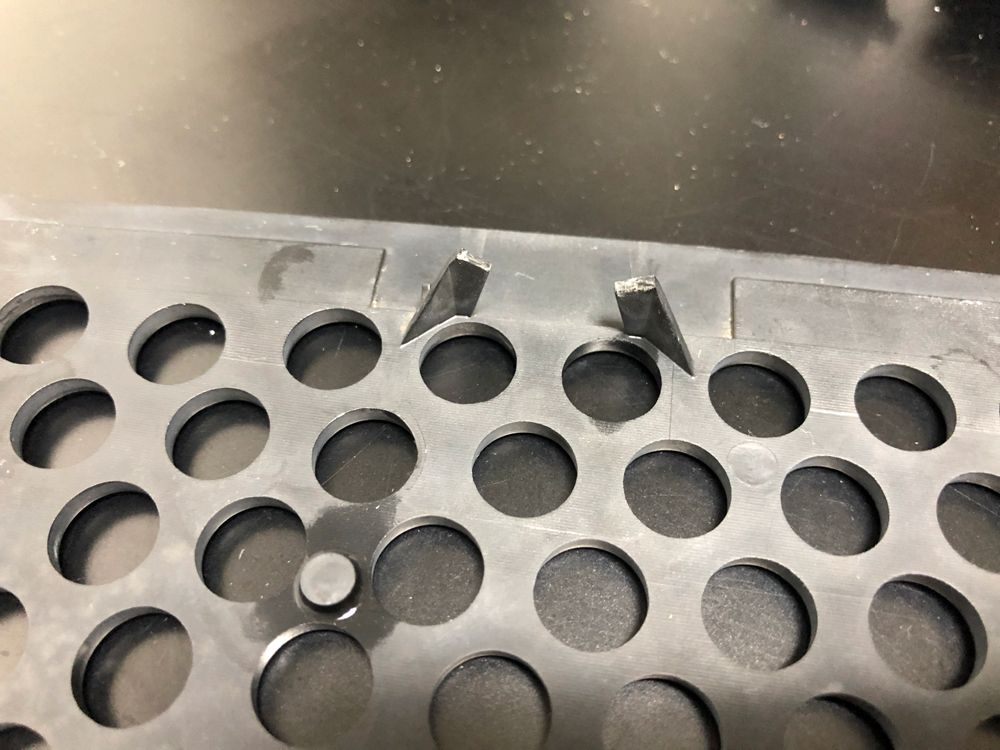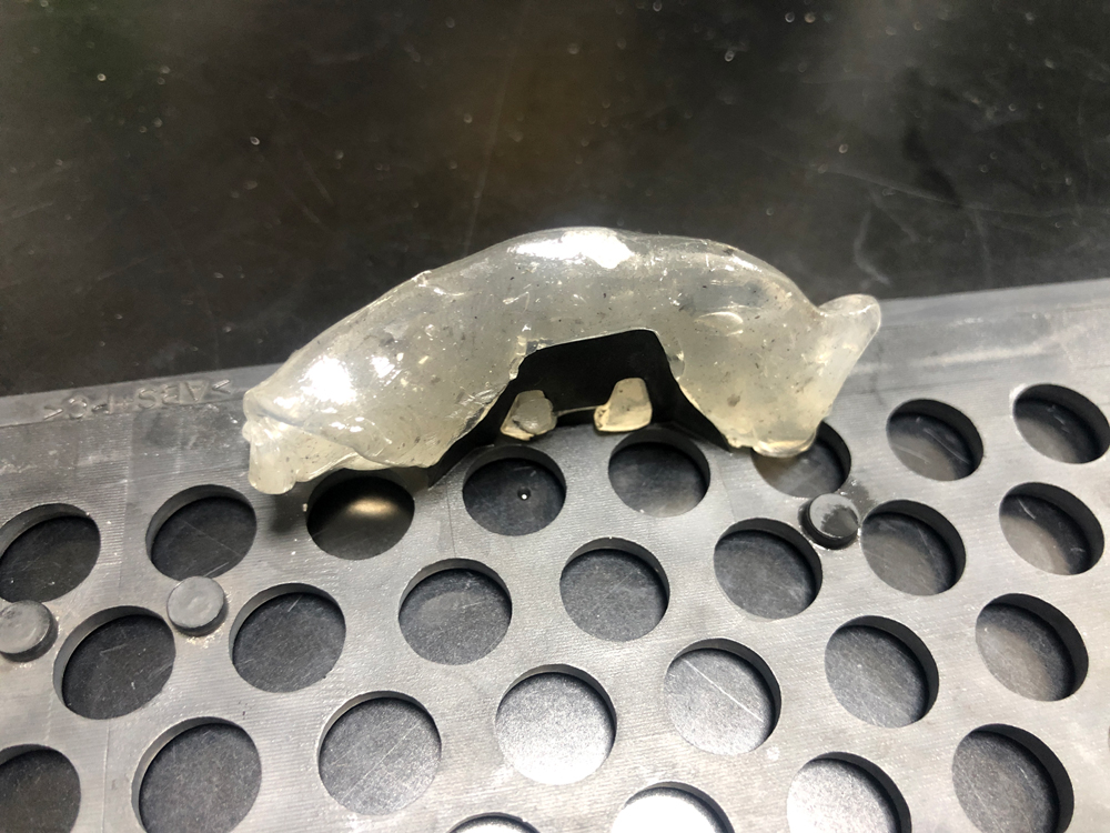 続いてプラリペアの黒を使って型取り君の破損個所を修復していきました。
