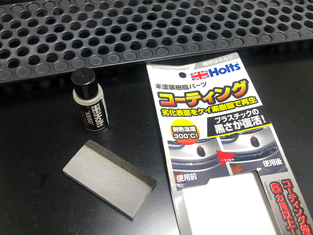 ボンネットグリルの白化対策にはHoltsの無塗装樹脂パーツコーティング剤を使用しました。
