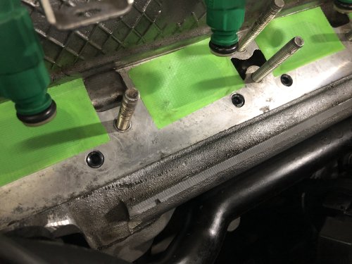 加工の方法ですがハンドタップにカッティングペーストを多めに塗り付けても切りくずは穴の中に落ちてしまうので、タップを切る前に布を押し込んで切りくずが落ちないようにして、タップを切った後に掃除機で切りくずを吸引し内部には切りくずが落ちていないことを確認したうえで押し込んだ布をピンセットで抜き取るという作業を6気筒分繰り返しました。この方法はYoutube上でこのような方法で加工している先駆者の真似です。