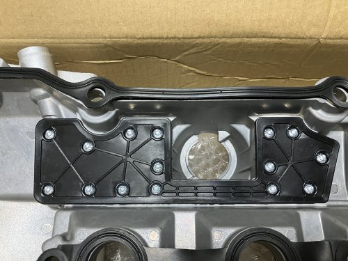 上記は付属品のアルミエンジンヘッドカバーを取り付けるグロメット付きボルト。純正品と形状は全くかわりませんが、このグロメットもメーカー不明という点がちょっとなんとも使うには抵抗あるかな?すぐに劣化して破けたりしたら嫌だし。それとなぜかグロメット付きボルトは15個入ってました。エンジンヘッドカバーの固定にはボルトは15本使うんですが、内12本は上記の写真のボルトで、その他3本は別形状のボルトなんですけどね。まあグロメット15個用意するから使えってことかな?使用するネジの形状は異なりますが使用するグロメットはすべて共通です。