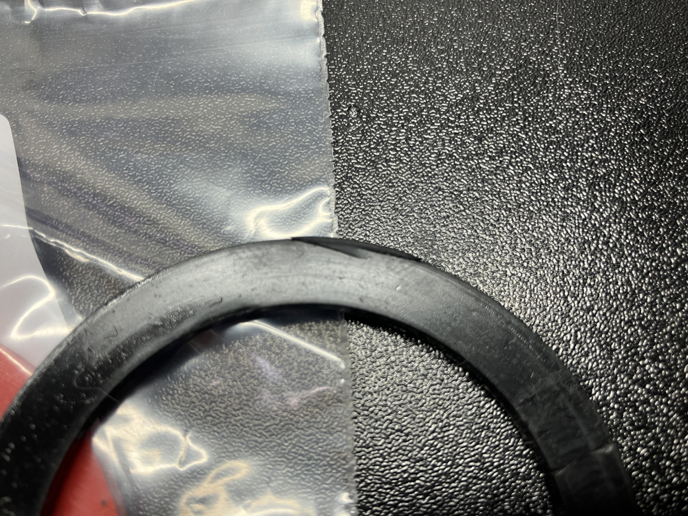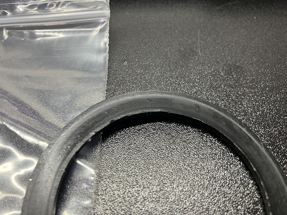 取り外したオイルフィラーキャップのゴムパッキンをよく見てみると亀裂が入ってしました。