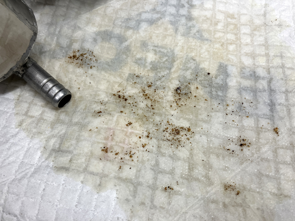 オイルセパレーター内部をパーツクリーナーで洗うとオイルとスラッジみたいなのが出てきます。オイルキャッチタンク内部のステンレスメッシュに付着したものが流れ落ちてきているようです。