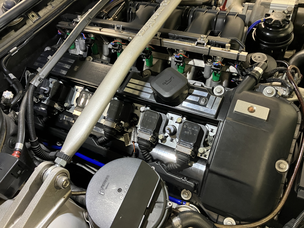 こちらのアルミエンジンヘッドカバー装備時に散々悩まされたオイル漏れは一切発生していません。エンジンヘッドカバーはある程度エンジンヘッドにネジれて装備されているため、アルミエンジンヘッドカバーの場合ネジれなくなるためグロメットとガスケットで押さえつけるだけではダメって事です。ノーマルエンジンの場合クランク圧は負圧か大気圧にしかならないのでアルミエンジンヘッドカバーを装備してもオイル漏れが発生することはほぼ発生しないので気が付かないだけだと思いますけどね。あとはM52TUBとM54Bエンジンでイグニッションコイル形状がかわったのでM54Bだと大丈夫かもしれませんが、M52TUBだとダメなのかもしれません。どちらにしてもアルミエンジンヘッドカバーの精度の問題というよりも素材の問題と判断して間違いないようです。