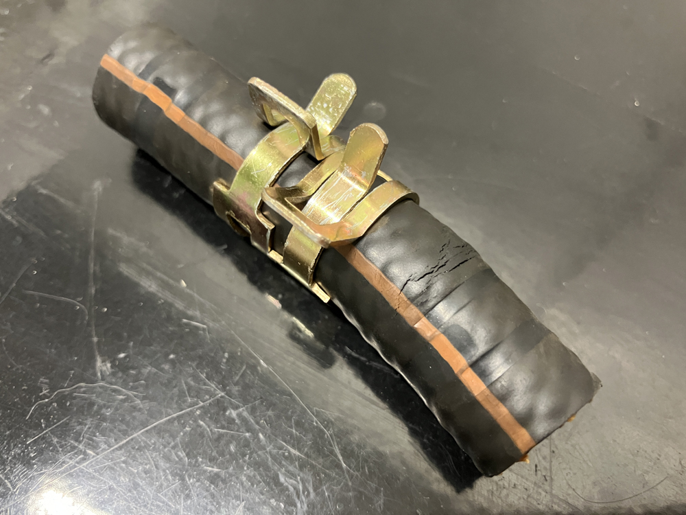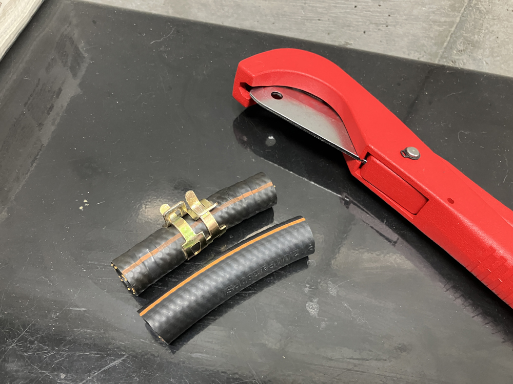 ホース内側には亀裂はありませんでしたが、ホースのあまりがあったので交換しました。サイズを合わせてホースカッターで切り出しました。