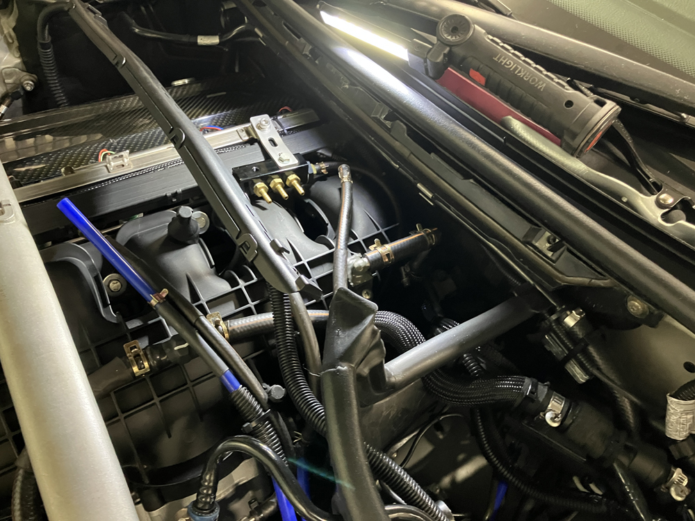 続いて負圧ラインの状態確認を行いました。インマニからの負圧はMapセンサー、ブローオブバルブ、ブーストメーター、チャコールキャニスターベントバルブなどの各ホースの状態確認。