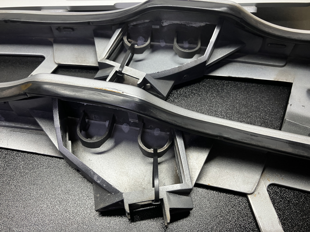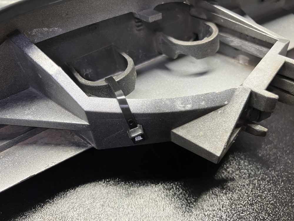 ノズルを収納するアイリッドの蓋部分とアイリッド本体に隙間があるのでその部分をコーキングで埋めるため、まずは蓋を固定する為にタイラップで固定。