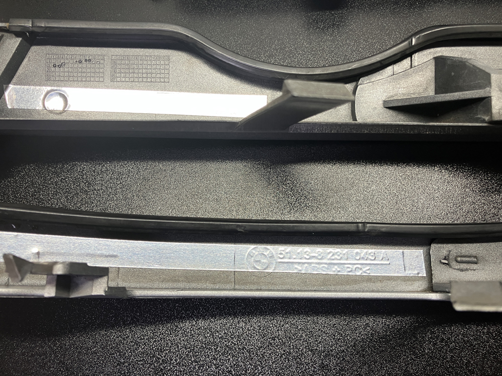 余談ですが、5年前に修理したE46クーペ車両の泣き所エッジプロテクションの取り付けにもバスコークを使用しましたが、現在まで一度も剥がれる事なく装備出来ています。詳細はこちら。
