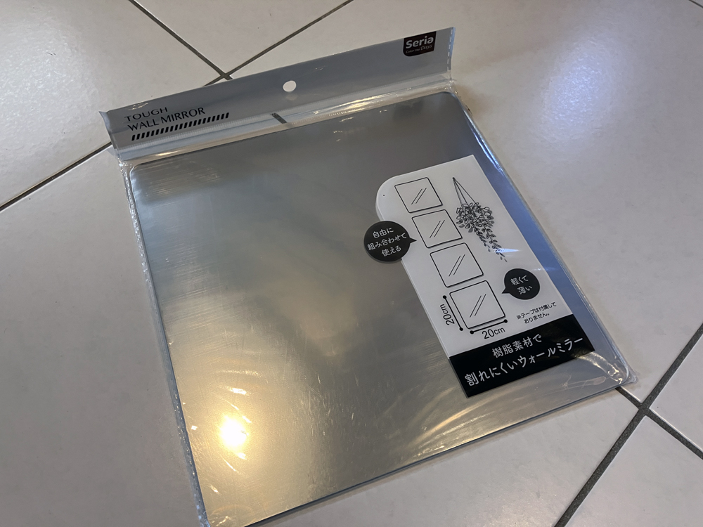 IKEAの鏡の名称は「DRÖMMARE ドロッマーレ」っというみたい。(リンク参照)在庫がある店舗に行った際についでに購入できればいいんですが、こんな鏡だけのために送料払って購入するのは馬鹿らしいので、なにか代品がないかなーなんて思っていたら100円ショップセリアで似たような鏡「樹脂素材で割りにくいウォールミラー」を発見。