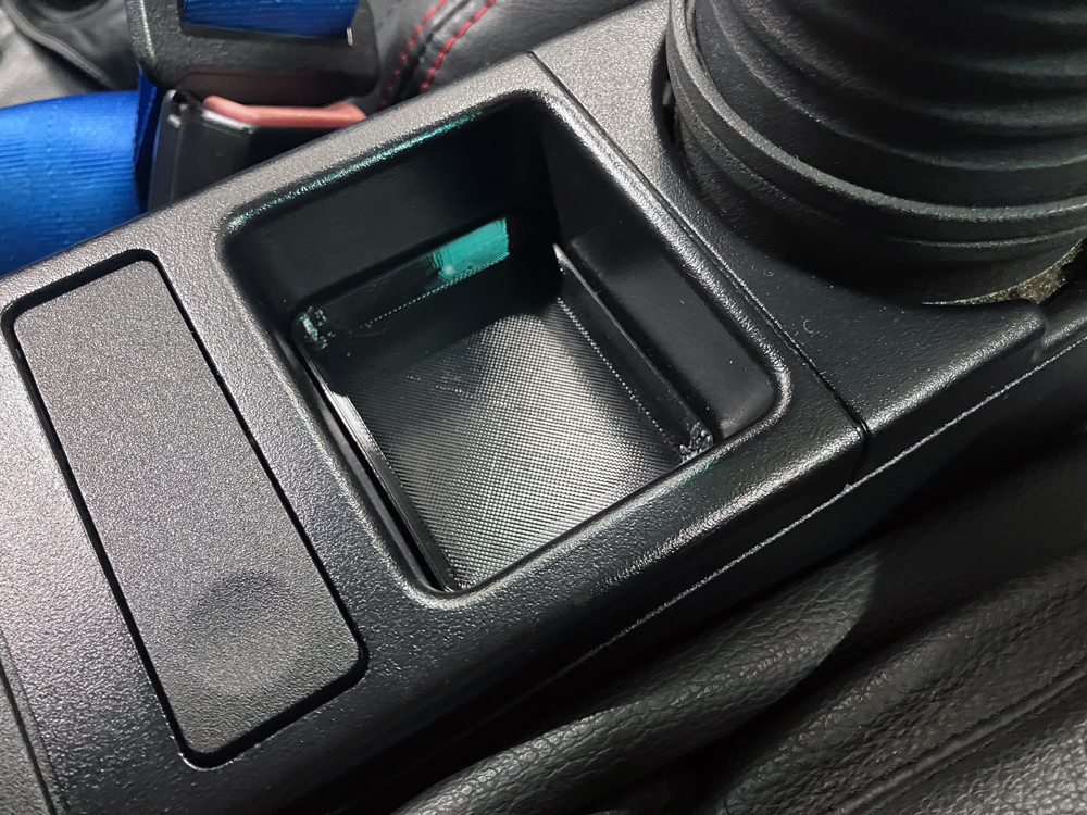いきなりですが、上記がTPU素材で出力したE46センターコンソール部分のキャップ。