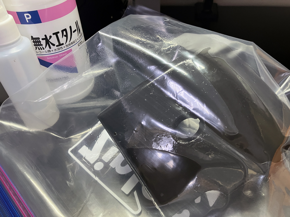 ジップロックから取り出してオレンジクリーナーなどを使用してプロティン塗装は剥がし、何度かジップロックに入れて無水エタノールを吹きかけて細部までプロティン塗装を剥がしました。
