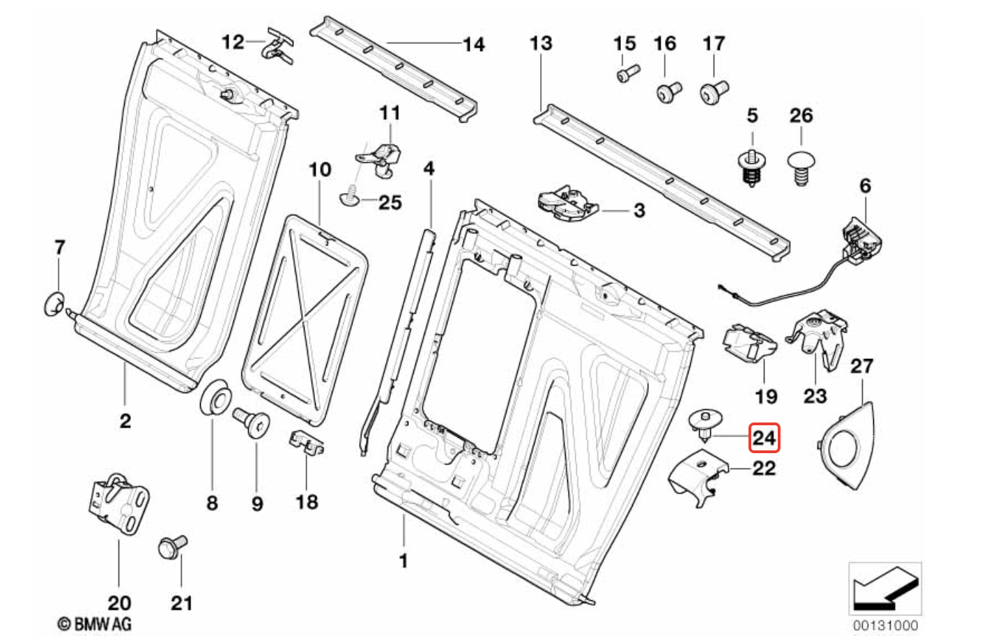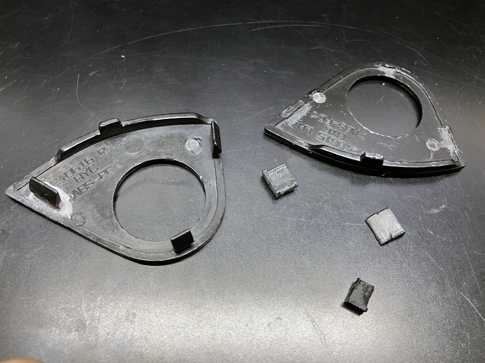 E46クーペのリアシートのシートベルト部分にあるカバー(図22)がプロティン塗装されていて、ベタつきはないのですが塗装が部分的に塗装が剥がれてみすぼらしい状態だったので、こちらの方法で無水エタノールを使用してプロティン塗装を剥がし、24番のピンが片方は紛失、残っていたほうも破損していたので3Dプリンターで作成し修理しました。![]()