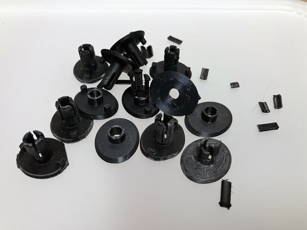 カバーを固定するクリップですが、試作を何度も繰りしました。上記は破損したクリップ。R部分を無視すればモデリングするのはそんなに難しくないのですが、この手の小さな部品を3Dプリンターで作成するにはかなりノウハウが必要です。