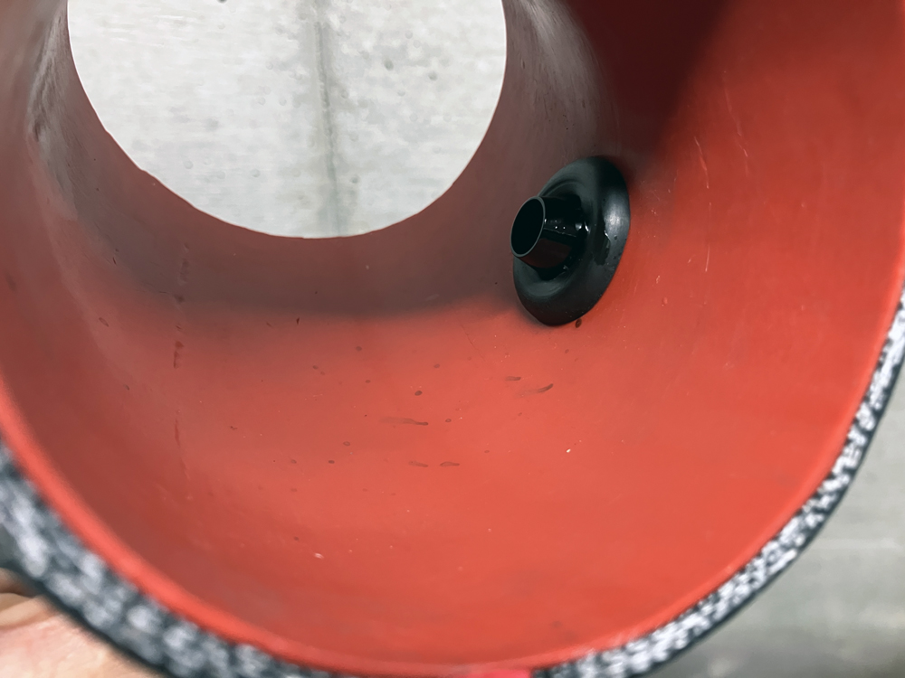 チャンバーを取り外して、ドレンを外して本体を傾けたらエマルジョン化した液体が出てきました。残念ながらこれはダメですね。オイルキャッチタンクではなくチャンバー内部にオイル成分がまだ流れ込んでいることになります。結果がよくありませんが、オイルセパレーターに繋がるブローバイホースを前回よりも長めのアルミパイプに変更してみました。目的はブローバイガスの冷却です。