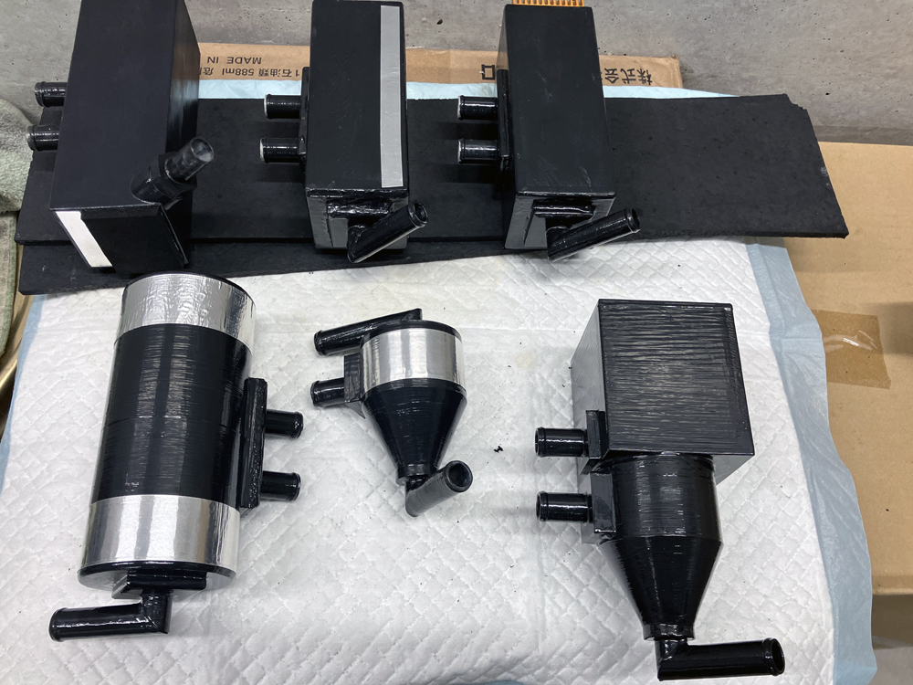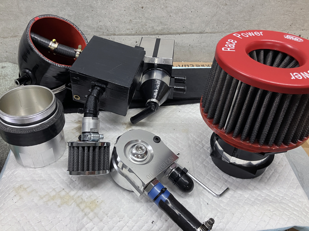 3Dプリンターを導入してから作ってきた歴代オイルセパレーター。ブローバイガスから極力液体成分を取り除くために、現在の車両に設置出来るスペース範囲内で色々テストしてますが、どれも大きく変わらず。そろそろ季節的にブローバイガスに水分が溜まりにくくなるので、いつものテストコース程度の距離の走行でのテストも終わりかな?経験則から20℃以下の気温なら継続すると思います。外気温によってブローバイガスに含まれる水分が大きくかわりオイル成分だけになると長めの距離を走らないと状態の確認が出来なくなります。