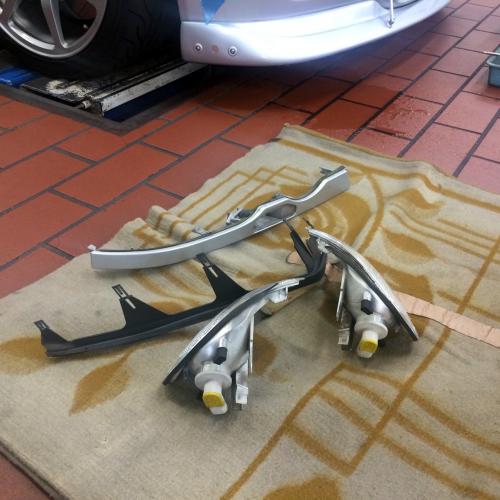 作業はStudie東京さんで行いました。上記の写真でわかると思いますがフロントライトカバーはかなり透明度が落ちてます。11年よくもってくれました。