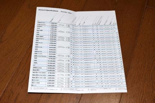 新車購入当時、1999年のBMW東京のプライスリストです。