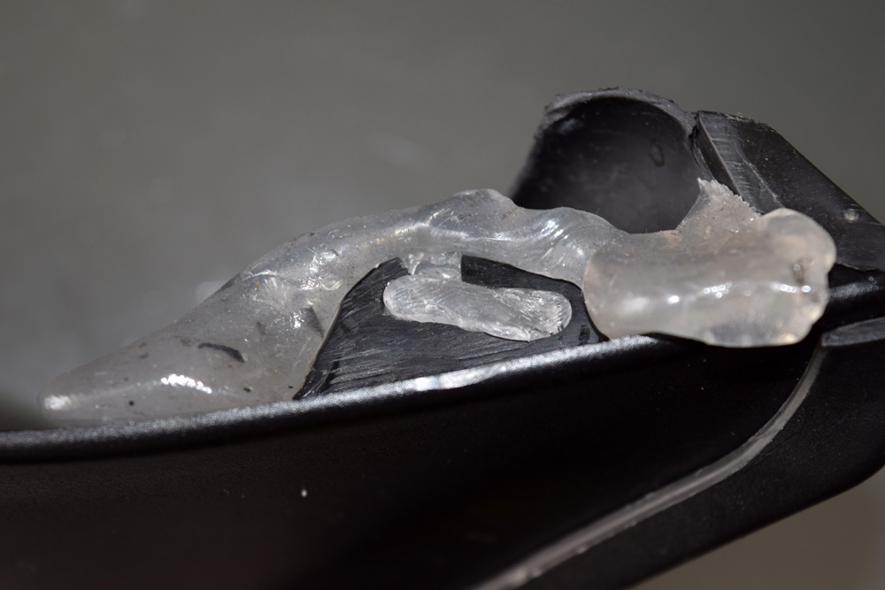 今度は、爪のひっかかる内部の穴の部分を広げ、プラペアをちょっと盛るように流し込みました。
