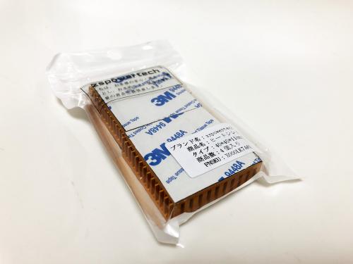 両面テープ付きで40mm x 40mm x 11mmサイズの4個入りアルミヒートシンクです。