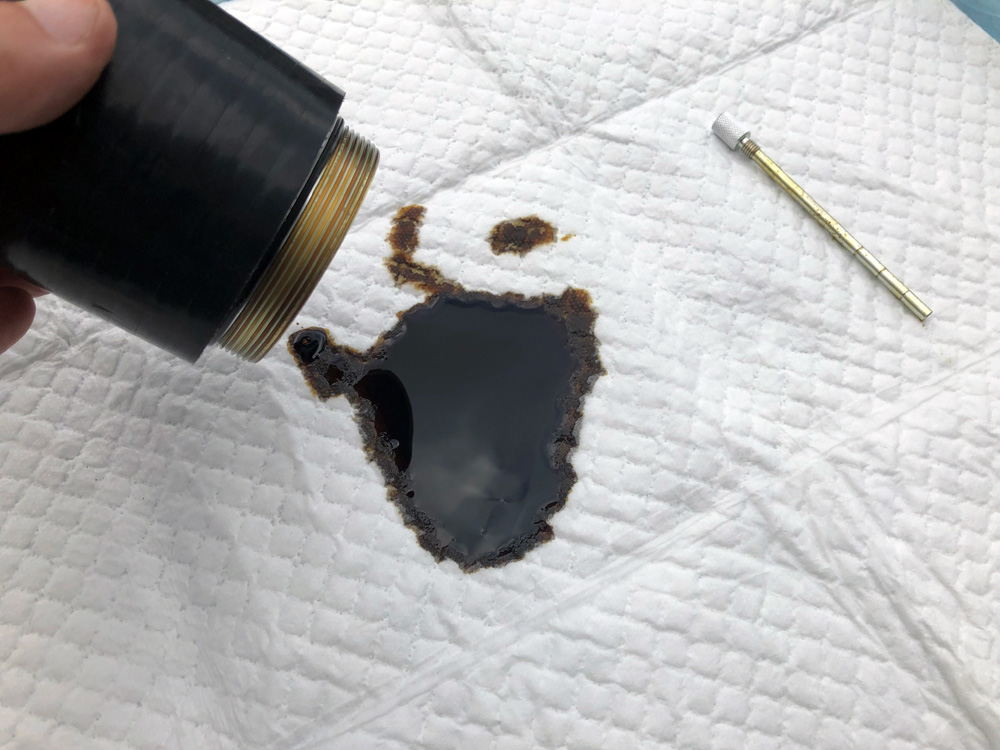 今回はほとんどオイル成分なので、色が黒く前回のように水っぽくありませんでした。(結構固めな液体)