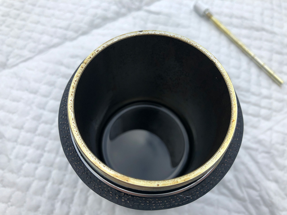 上記の写真は2019年8月13日にオイルキャッチタンクを取り外したときの状態。ブローバイガスに含まれるオイルミスト成分が少しだけ溜まってました。